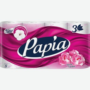 Туалетная бумага PAPIA Сикрет Гарден 3-сл., Россия, 8 шт