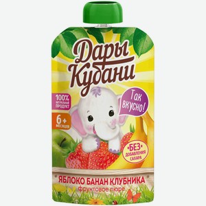 Пюре Дары Кубани фруктовое из яблок бананов и клубники для питания детей с 6 месяцев, 90г