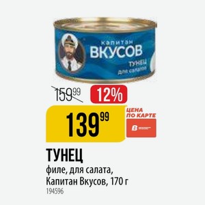 ТУНЕЦ филе, для салата, Капитан Вкусов, 170 г