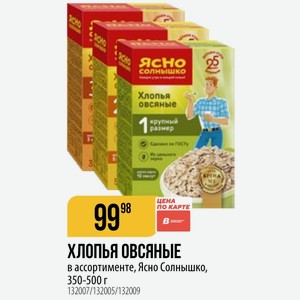 ХЛОПЬЯ ОВСЯНЫЕ в ассортименте, Ясно Солнышко, 350-500 г